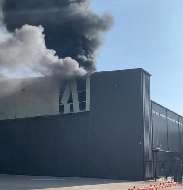 Một góc nhà chứa máy bay bốc ch.áy sau vụ t.ai n.ạn. Ảnh: Twitter/JohnyAlamo.