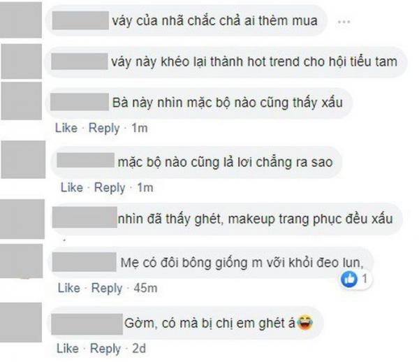 Có người thẳng thừng: “Váy của Nhã chả ai thèm mua”; “Váy này khéo thành hot trend cho hội tiểu tam”. (Ảnh: FB)