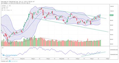 Kết phiên giao dị.ch ngày 17/7/2019, VN-Index chốt ở 982,57 điểm, tăng 0,46 điểm (+0,05%) với khối lượng giao dị.ch khớp lệnh đạt 142 triệu đơn vị, giá trị 3.364 tỷ đồng.