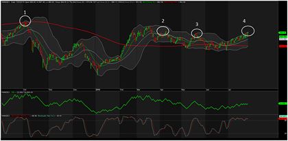 Ở khung thời gian này, thanh Bar cuối phiên với khối lượng lớn cho thấy đã có hiện tượng chốt lời khá lớn sau khi giá chạm đỉnh kênh.