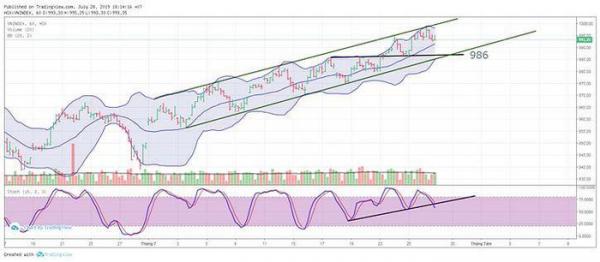 Chưa nói đến ngưỡng tâm lý 1.000 sẽ vẫn gây khó khăn cho VN-Index, ngay cả phiên 26/7 chỉ số chưa thể chạm vì áp lực chốt lời cộng dòng tiền suy giảm, tạm thời bên bán vẫn kiểm soát ở khu vực gần các ngưỡng cản mạnh vì bên mua rất thận trọng và cảnh giác.