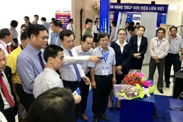Bộ trưởng Nguyễn Mạnh Hùng và đoàn đại biểu tham quan khu triển lãm tại hội thảo