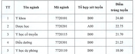 Trường đại học Y dược Thái Bình: Điểm chuẩn ngành y khoa của trường năm nay là 24,6 (năm ngoái là 22,7 điểm); dược học 22,75 điểm (năm ngoái là 21,55 điểm). Cụ thể điểm chuẩn từng ngành như sau: