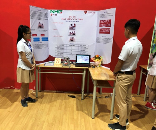 Từ sự say mê tích cực tìm hiểu, được sự tận tâm hướng dẫn của các thầy cô giáo nên sản phẩm “Máy khắc mini CNC” do Hoàng và Ngọc chế tạo đã vượt qua vòng thi cấp trường để được chọn dự thi cấp Hệ thống và vào chung kết cấp Tập đoàn.