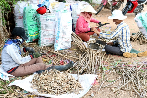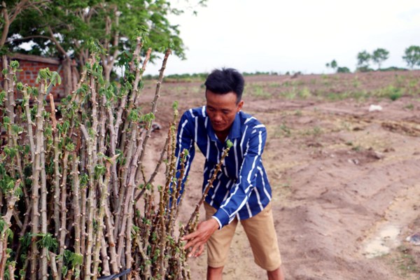 Ông Trần Văn Tạm (áo trắng) đã bỏ trồng mía sang cây mì. Ảnh: KN