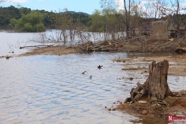 “Vài ngày trước tôi còn đi vào lòng hồ, có rất nhiều cây lứa chìm ở phía đáy. Hiện nay mưa lớn nên mực nước dâng cao, các chú không thể nào nhìn thấy. Nhưng ở 2/3 đáy hồ thì cây cối bị ngâm không xuể”, ông A. nói.