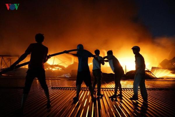 Sau khoảng hơn 30 phút, đám ch.á,y làm sập một góc nhà kho. Hơn chục xe chuyên dụng đến hi.ệ,n tr.ư,ờ.ng và hàng chục cảnh sá.t dùng vòi rồng phun nước cứu hỏa; một số người phá các bức tường gạch bao quanh nhà kho để tiếp cận ngọn lửa. Hàng trăm công nhân được huy động đưa hàng hóa, thiết bị ra ngoài.