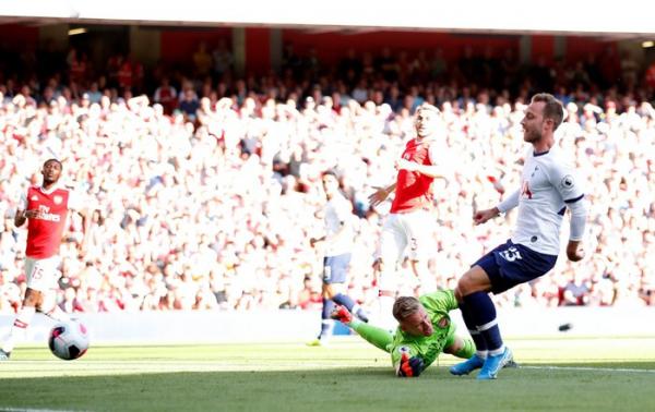Tottenham chơi tấn công phủ đầu ngay từ sau tiếng còi khai cuộc và những nỗ lực tấn công của đội khách mang lại hiệu quả ở phút thứ 10. Thủ môn Bernd Leno bên phía Arsenal đã có một pha xử lý không tốt khi bắ.t không dính cú sút khá nhẹ của Erik Lamela, tạo điều kiện cho Eriksen sút bóng vào khung thành trống.