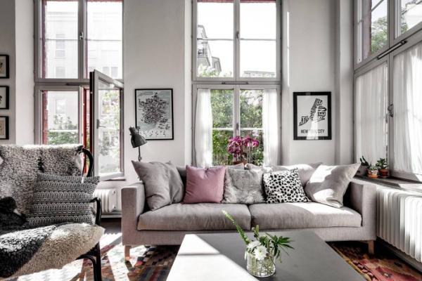 Không gian ấm cúng với sự kết hợp đặc biệt bởi gam màu ghi - hồng.