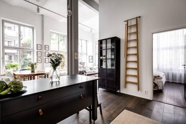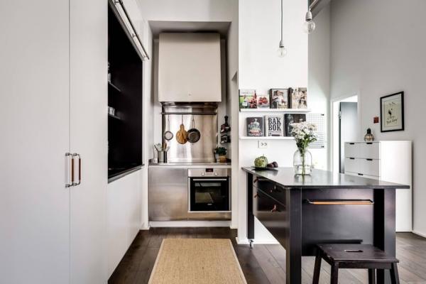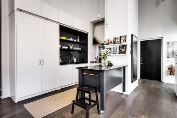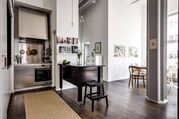 Ngăn cách bếp với khu vực chính bằng đảo bếp di dộng có bánh lăn phía chân để tiện lợi sử dụng khi cần thiết. Đảo bếp còn là nơi cất trữ đồ đạc hay là chiếc bàn ăn sáng, bàn đọc sách tiện lợi.