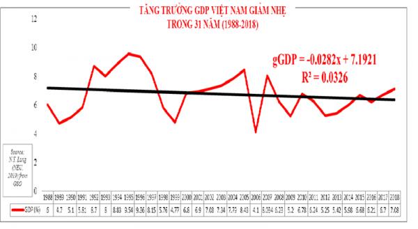 Tăng trưởng GDP Việt Nam giảm nhẹ trong 31 năm (1988-2018).