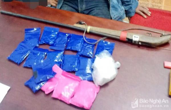 Khẩu sú.n,g và số ma tú.y thu giữ của Xá. Ảnh: Quỳnh Trang
