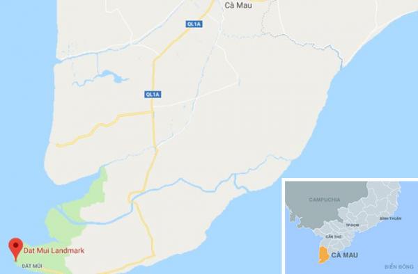 Mũi Cà Mau (chấm đỏ). Ảnh: Google Maps.