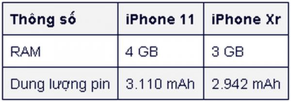 Đầu tiên là iPhone 11, sản phẩm kế nhiệm của iPhone Xr năm ngoái, có pin lớn hơn một chút và đi kèm với RAM 4 GB giúp giữ nhiều ứng dụng chạy trong nền hơn iPhone Xr. Apple cho biết iPhone 11 có thời lượng pin lâu hơn 1 giờ so với iPhone Xr, có nghĩa mức nâng cấp nhẹ.