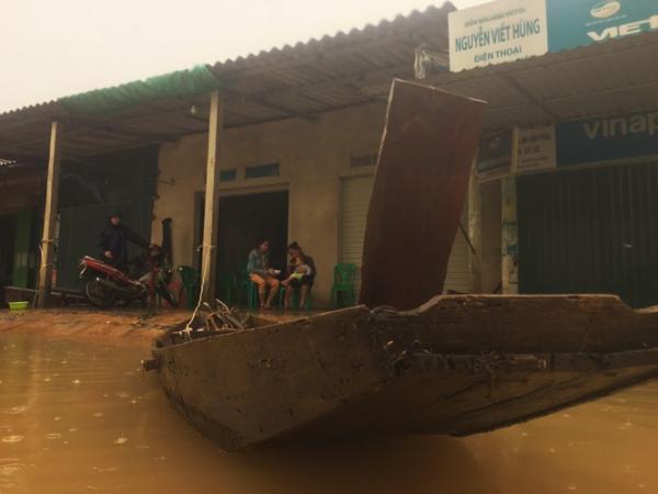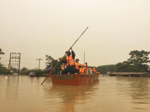 Mọi tuyến đường bị chia cắ.t do lũ, phương tiện đi lại duy nhất là đường thủy.