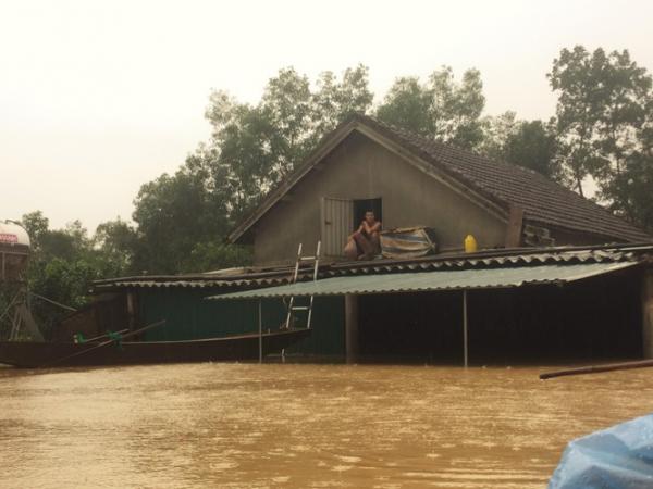 Mưa lớn nhiều ngày khiến lượng nước sông Ngàn Sâu dâng cao, hiện tại trên địa bàn huyện Hương Khê (Hà Tĩnh) có hơn 20 xã bị chia cắ.t do lũ, có những nhà dân bị ngập tận nóc, người dân đành ngồi mái nhà chờ nước rút.