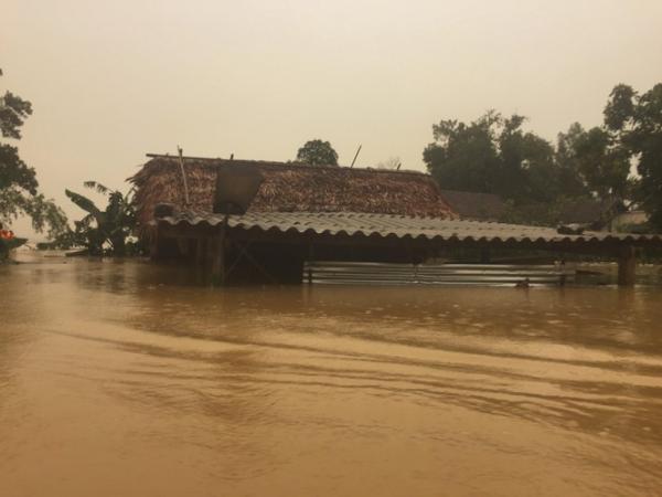 Theo thống kê tại xã Hương Giang có 330 hộ bị nước ngập vào nhà, trong đó có nhà nước ngập tận nóc.