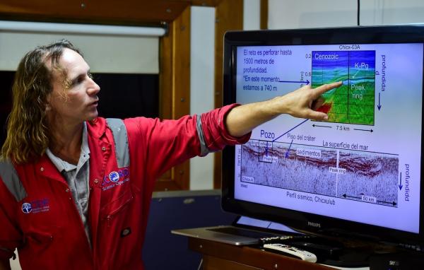 Các nhà khoa học đã làm việc trên một con tàu khoan tên là Lifeboat Myrtle neo đậu ngoài khơi cảng Progreso của Mexico. Năm 2016, họ lần đầu tiên khoan vào mép bên trong của miệng núi lửa dưới đáy biển bị chôn vùi dưới 457 mét đá vôi tích tụ hàng triệu năm từ khi xảy ra vụ đâ.m thiên thạch.
