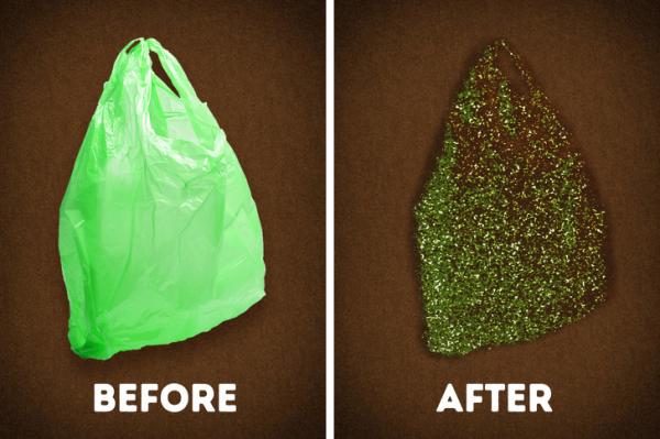 Chiếc túi nylon không còn nguyên vẹn sau khi bị sâu sáp ăn. Ảnh: BrightSide