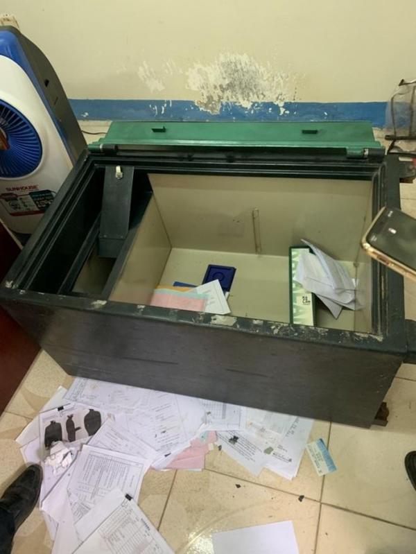 Két sắt tại một công ty bị nhóm đối tượng cạy phá. Ảnh: báo CAND
