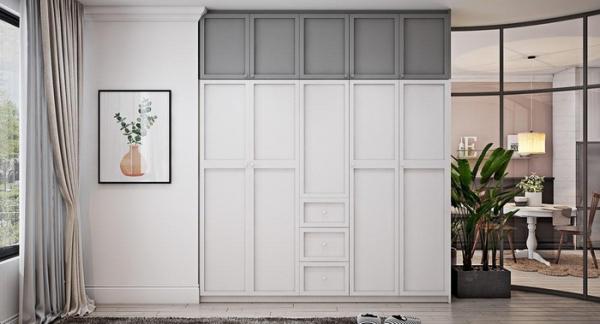 Để giải quyết vấn đề lưu trữ cho căn hộ, một chiếc tủ âm tường đã được thiết kế và đặt cạnh phòng ngủ.