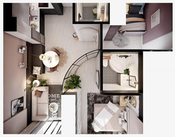 Thông thường với diện tích khiêm tốn 25m2 chỉ đủ để bố trí môt phòng ngủ, nhưng bằng việc chọn vách ngăn kính căn hộ này vẫn có 2 phòng ngủ rộng rãi