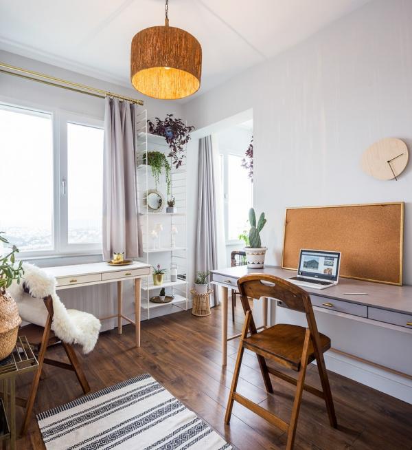 Phòng làm việc giản dị, gọn gàng và tràn ngập ánh sáng dù là đêm hay ngày.