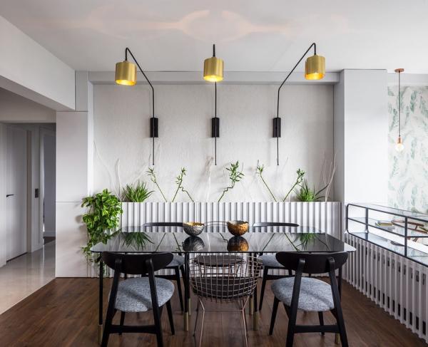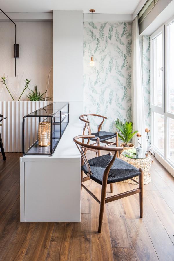 Chủ nhân đặt một vách ngăn tạm giữa bàn ăn với cửa sổ để làm nơi thư giãn, ngắm nhìn thành phố từ trên cao.