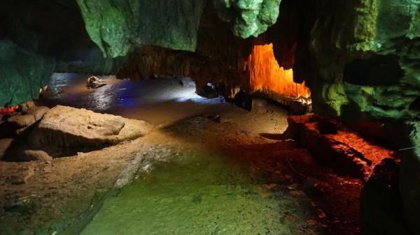 Vào động nước, du khách đi thuyền trên dòng sông ngầm dài 500m được ví như “dải ngân hà”, còn các nhũ đá bên trên và hai bên dòng sông đẹp tựa như trăng sao. Phía dưới mặt nước phản ánh lấp lánh ánh sáng lên trên càng làm cho cảnh vật lung linh huyền ảo. Dải ngân hà uốn lượn, hun hút như vô tận với tầng tầng lớp lớp khối thạch nhũ lung linh sắc màu với những truyền thuyết về Đảo Hoa Tiên, bầu Sữa Mẹ,... tạo cho du khách cảm giác lạc vào cõi thần tiên, đắm say với chốn bồng lai tiên cảnh.