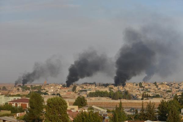 Khói đen bốc lên từ thị trấn Ras al-Ain tại Syria nhìn từ phía Thổ Nhĩ Kỳ (Ảnh: Reuters)