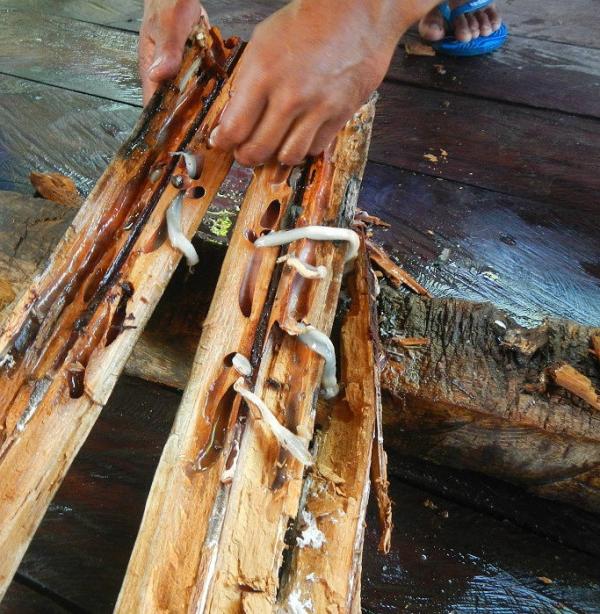 Tamilok sống trong thân gỗ và chết ngay khi tiếp xúc với không khí là món đặc sản nổi tiếng ở Philippines. Tuy nhiên, không phải ai cũng dám ăn sống những con sâu gỗ nhầy nhụa này.