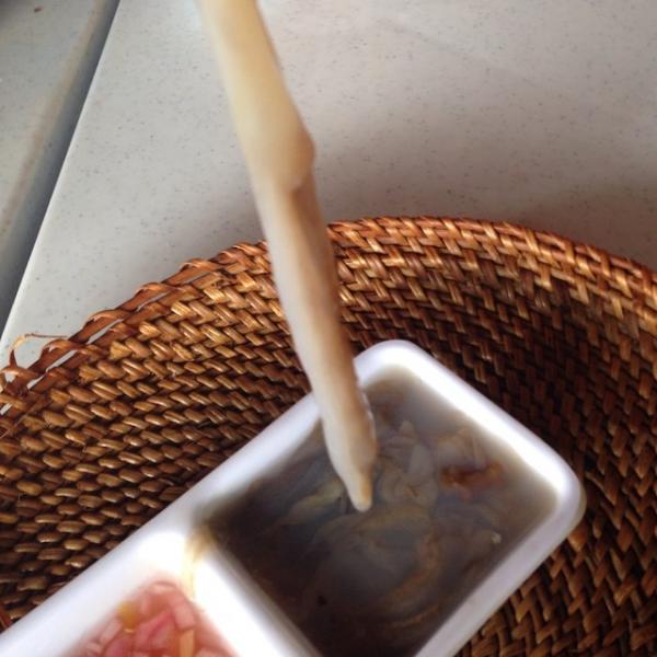 Sau khi thu hoạch, người dân địa phương bỏ đầu, chân và vắt phân ra khỏi tamilok, sau đó nhúng cả con vào gia vị. Một loại hỗn hợp nổi tiếng để ướp tamilok bao gồm các thành phần như giấm dừa, nước cốt chanh, ớt, muối và hành tây xắt nhỏ. Ảnh: Gian Carlo Jubela.