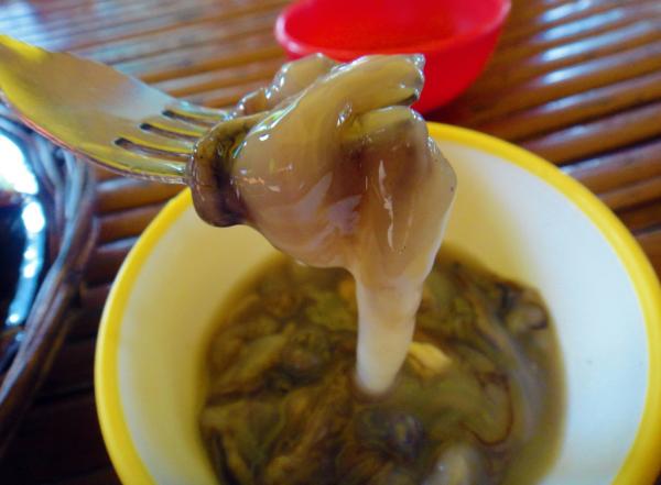 Tamilok (sâu gỗ) trông như những con giun nhỏ nhếch nhác nhưng lại là món ăn ngon miệng, đặc sản phổ biến ở vùng Palawan và Aklan của Philippines. Được tìm thấy trong các khúc gỗ mục nát hoặc thân cây dày chìm dưới nước ở rừng ngập mặn, tamilok có thân dài, màu trắng đục và là động vật thân mềm giống ngao, sò. Ảnh: Best Ever Food Review Show.