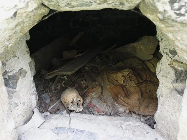 Nhìn từ bên ngoài vẫn có thể thấy các hộp sọ, xương người và các xác ướp được chôn cất từ 600-700 năm trước. Thậm chí, quần áo và một số đồ gia dụng của họ vẫn còn sót lại.