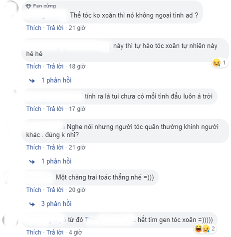 – “Ủa, tóc thì chỉ là vật ngoài thân thôi mà. Xoăn hay thẳng chỉ cần ra tiệm sửa thôi mà. Chả nhẽ cũng vì thế mà quyết định được tính cách con người”