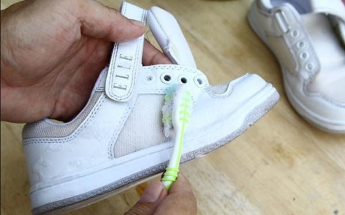 - Khi giặt giày, đối với những vết bẩn nhỏ có thể dùng bàn chải đánh răng cũ để cọ