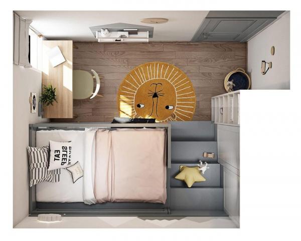 Chiếc giường tầng kết hợp tủ lưu trữ mang đến không gian sống thú vị cho đứa trẻ.
