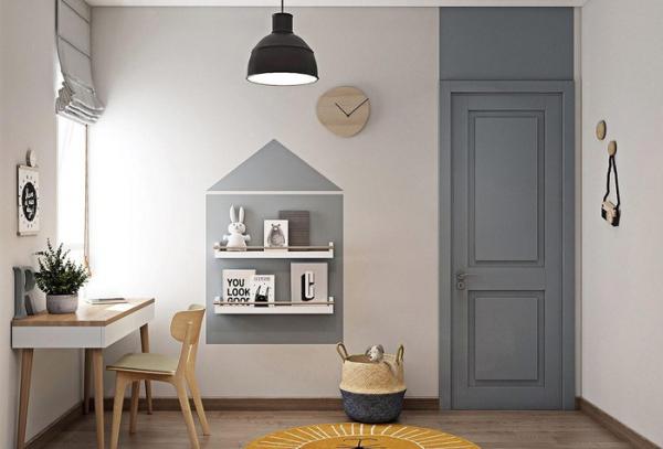 Một chiếc bàn học xinh xắn đặt sát cửa sổ, để bé có đủ ánh sáng học bài.