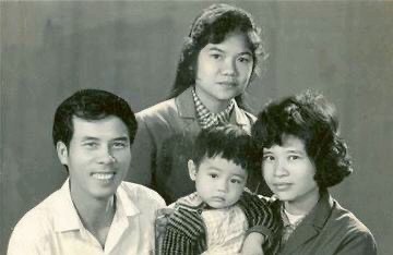 Nhà thơ Thanh Tùng hạnh phúc với người vợ “Thời hoa đỏ” (Vợ Thanh Tùng bế con trai)