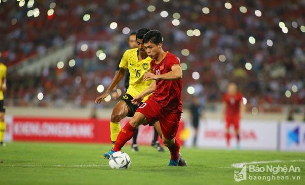 Công Phượng đã gây ra nhiều khó khăn cho hàng thủ Malaysia. Ảnh tư liệu Xuân Thủy