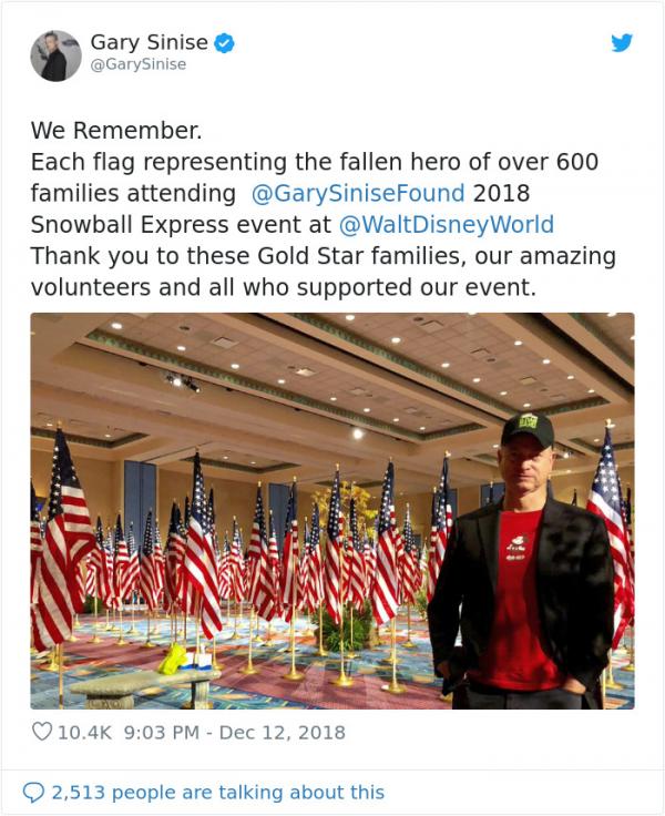 Nam diễn viên Gary Sinise đã tài trợ cho hơn 1000 đứa trẻ là con của các cựu chién binh Hoa Kỳ thăm công viên Disneyland (ảnh: Boredpanda).