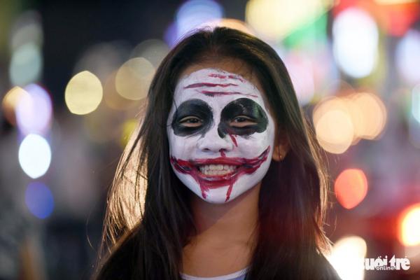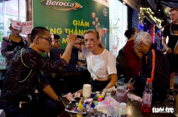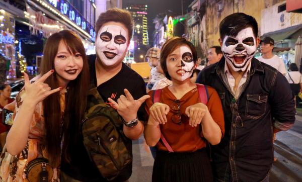 Tại phố đi bộ Bùi viện (quận 1, TP.HCM), khu tập trung đông đảo khách Tây xuất hiện những màn hóa trang bắt mắt và không kém phần rùng rợn.