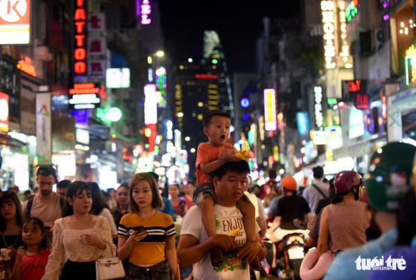 Khoảng 20h tối, phố đi bộ Bùi viện đã chật kín người - Ảnh: DUYÊN PHAN