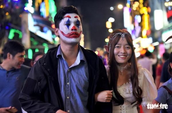Tối 31-10, rất đông người đã đổ về phố đi bộ Bùi viện (quận 1, TP.HCM) để vui chơi và hưởng không khí Halloween. Dạo một vòng, bạn sẽ bắt gặp những màn hóa trang không thể ấn tượng hơn của giới trẻ Sài Gòn.