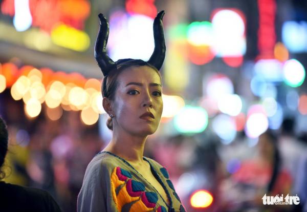Cô gái tên Thảo cùng bạn bè xuống phố, hóa trang không đáng sợ mà lại rất dễ thương - Ảnh: DUYÊN PHAN