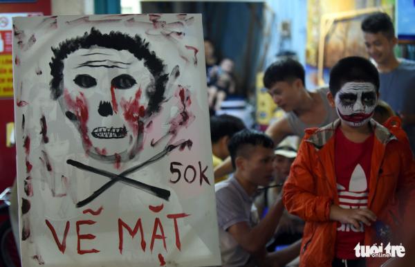 Các hoạt động kinh doanh vẽ mặt nạ ma quỷ cũng nở rộ với giá 50.000 đồng/mặt - Ảnh: DUYÊN PHAN