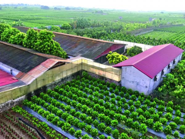 Những ngày này, bên cạnh việc chăm sóc cho đàn lợn, anh Nguyễn Hoàng, Chủ nhiệm Hợp tác xã (HTX) Chăn nuôi hữu cơ Hợp phát đang tất bật chăm sóc những gốc bưởi, ổi trĩu quả của gia đình. Anh Hoàng giới thiệu, đó không chỉ là vườn cây ăn trái thông thường mà chính là “vành đai” an toàn để bao bọc, cách ly các yếu tố, mối đe dọa từ bên ngoài tiếp xúc với khu chuồng nuôi nằm sâu bên trong khoảng 150m.