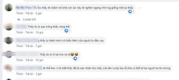 Dù rất ghét thể loại sức dài vai rộng không chịu đi làm mà cướp giật, một số người xem clip cho rằng thái độ của sư thầy này khá hung hăng và có vấn đề. Cụ thể là ông đã lấy lại được ĐTDĐ thì dù không thể tha cho tên cướp nhưng cũng nên thể hiện lòng từ bi, nói lời khuyên răn với hắn.