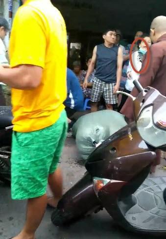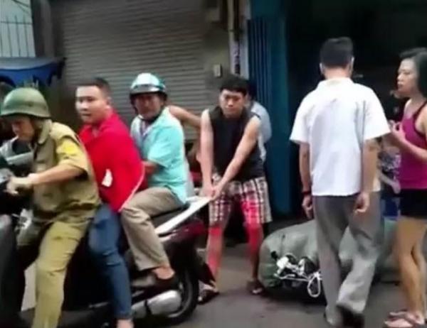 Kẻ giật ĐTDĐ bị người dân bủa vây, khống chế và nằm ngửa dưới đất.