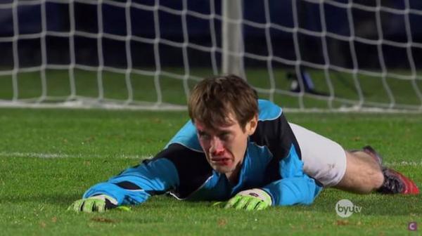 Scott Sterling bầm dập vì bị bóng sút trúng mặt nhiều lần.